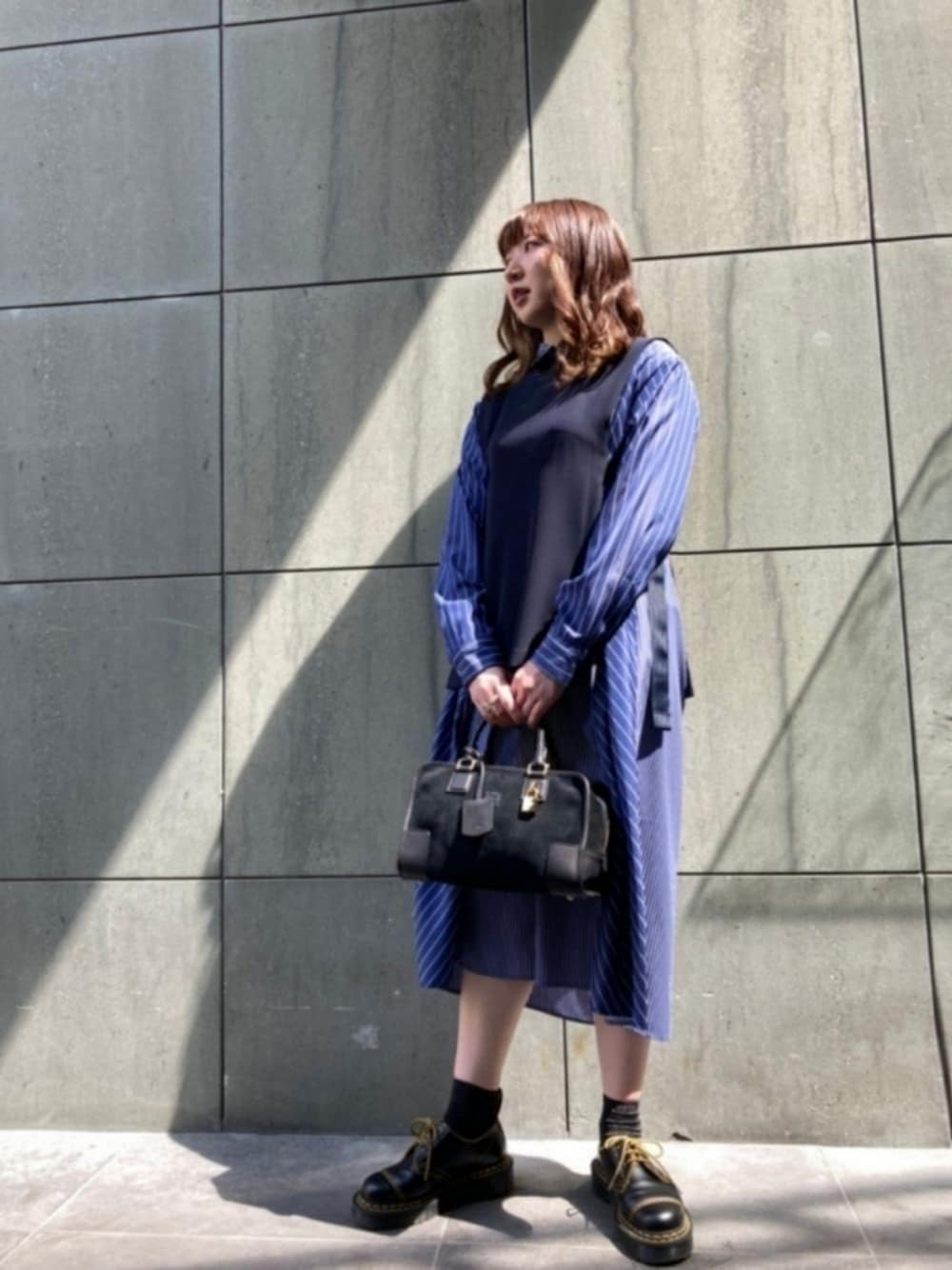 mayukoのシャツワンピース「ベストセット オーバーシャツドレス」を使ったコーディネート