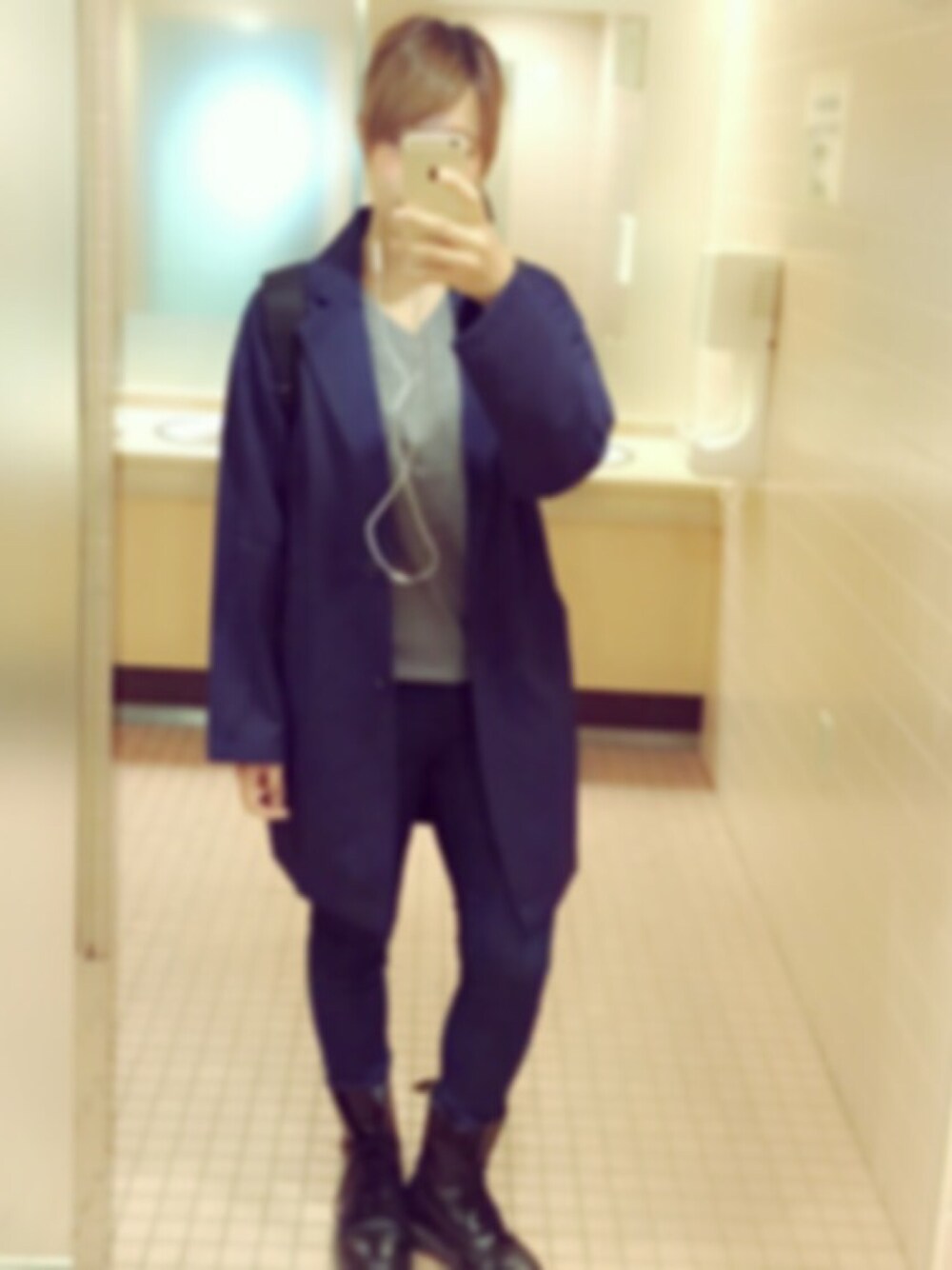 チェスターコートで秋っぽく♡ ダイスキなパンツとMartinの組み合わせ! トップスには首元がスッキリする vのニットを合わせました〜♡(^O^)