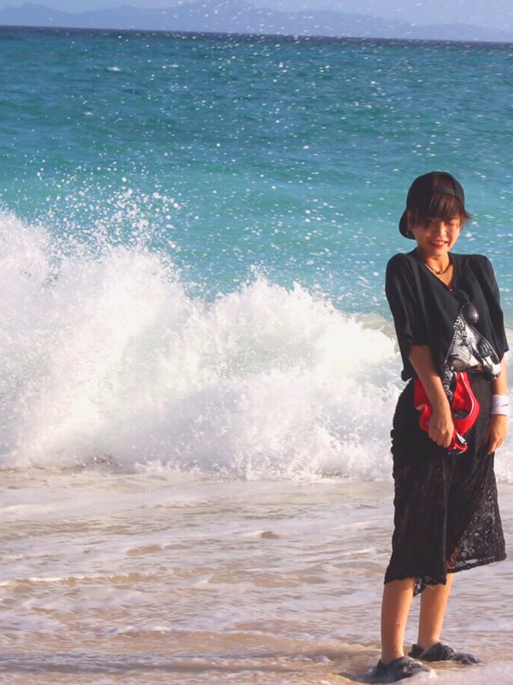 沖縄に行った時の写真データです。 一眼で撮影して貰いました (^(^)v 海の透明度が綺麗でした 、 肌が白いので黒をよく着ます。 今回も黒を合わせました、ただ、夏なので、 したは避けるレースのパンツです。 ストリート × UNISEX の合わせで、 好きなように今回も着たい服を着ました。