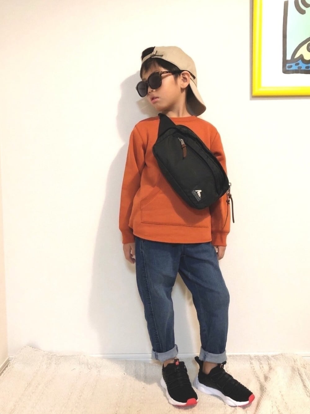 レンガカラーのスウェットが秋らしくて良いです🍂 ザ・シンプル🙃 119cm 21㎏ 5y 120㎝着用