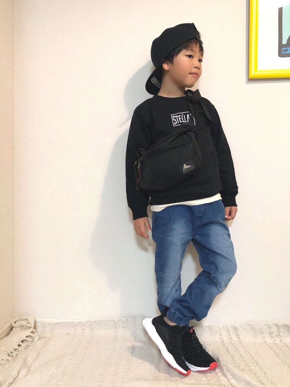 昼間あたたかくて 調子のって アウター脱ぎ捨てて 夜に急に寒くなるアルアル🥺 スウェット男子。 ☆ . 120cm 21㎏ 5y 120㎝着用