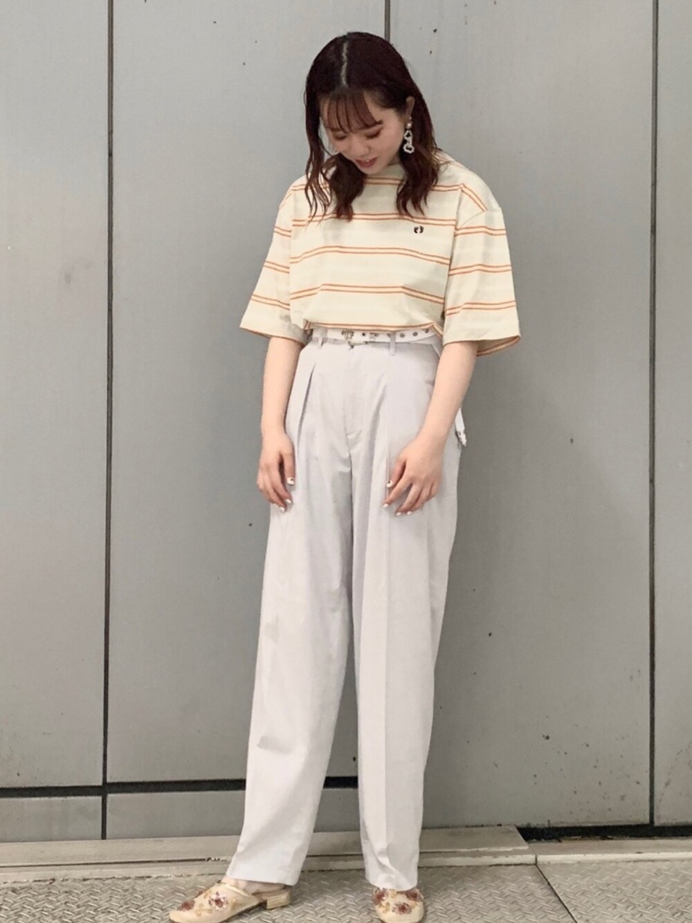 セットアップ着回しコーデ🕊 〜着用アイテム〜 HANG TEN×JUNRedボーダーTEE size M エアリーストレッチワイドパンツ size M ホワイトパンツは1本持っていれば着回し抜群です❣️ とても軽いので履きやすく夏でも快適です🥰