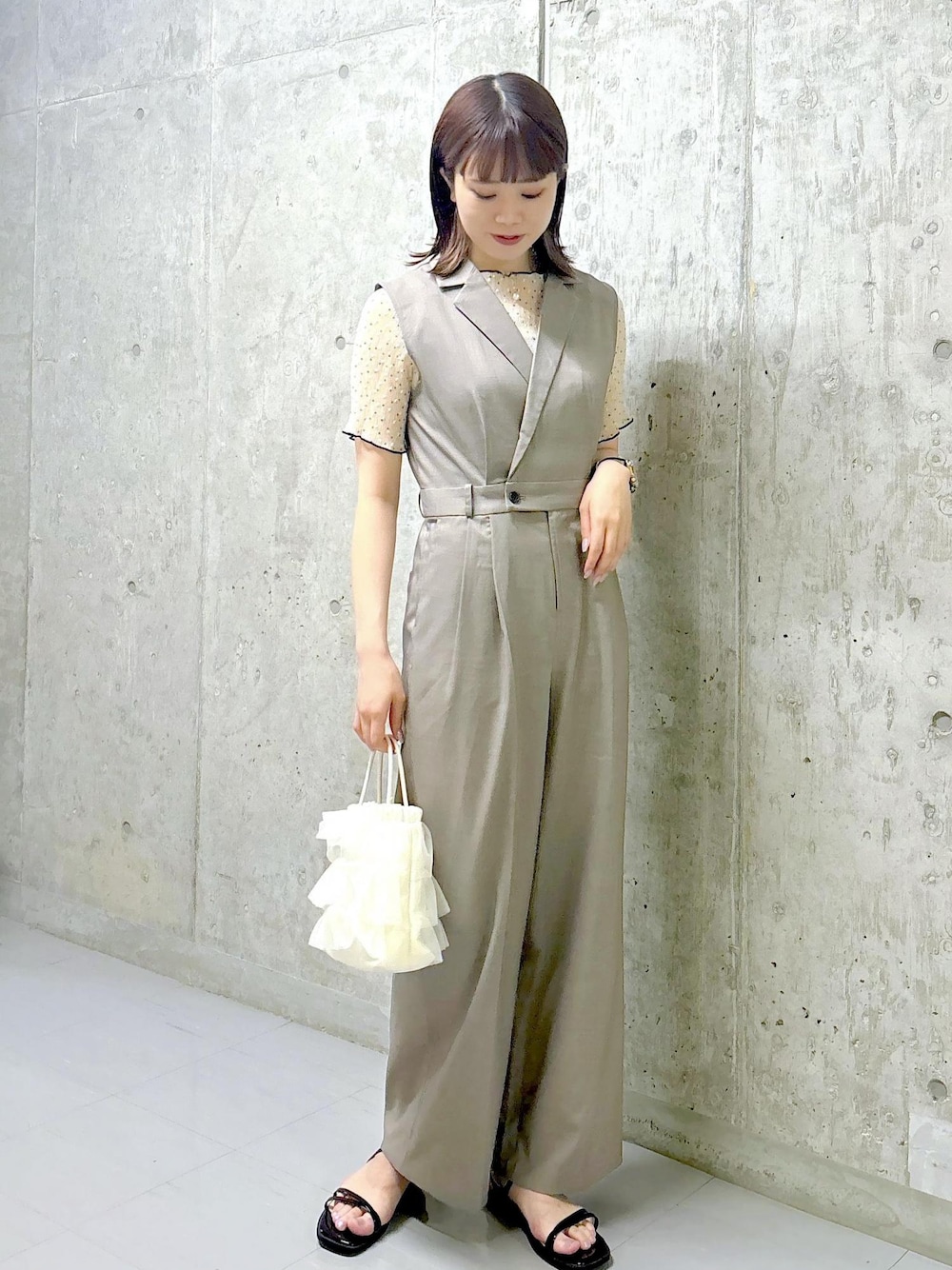 ご覧いただきありがとうございます!♡ テーラードオールインワンにドット柄ブラウスを合わせてキレイめ+可愛いコーデに仕上げました◎ インスタ>>>@pic_mako_