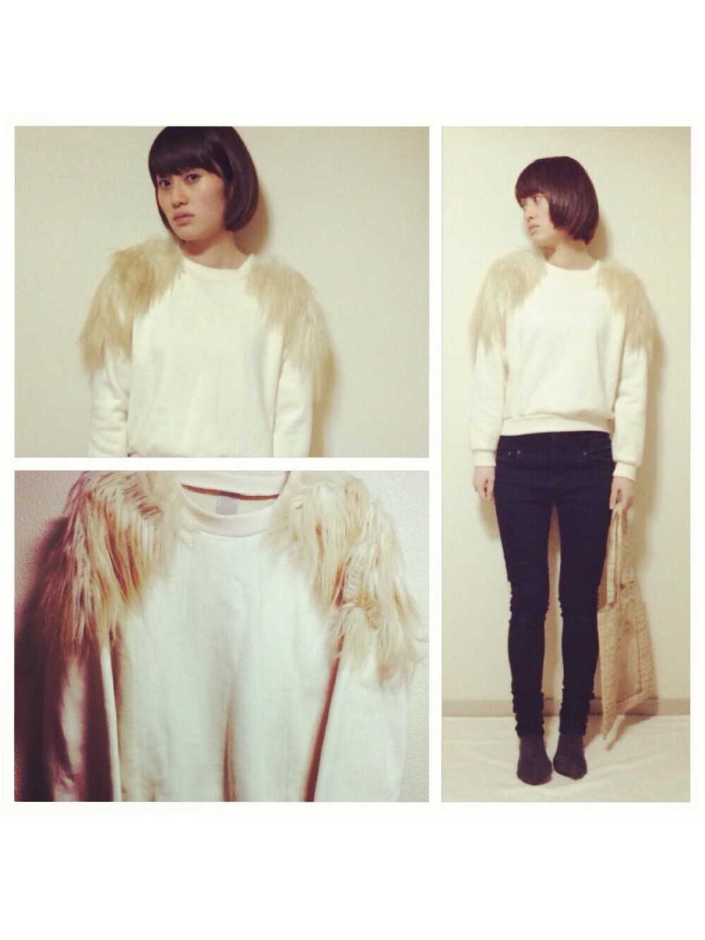 manae mihashiのスウェット「ファー付きトレーナー」を使ったコーディネート