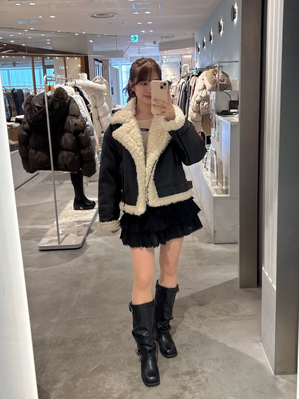 アウターは中がボアなので真冬でも暖かいです! スタンドカラーでも着用できます◎