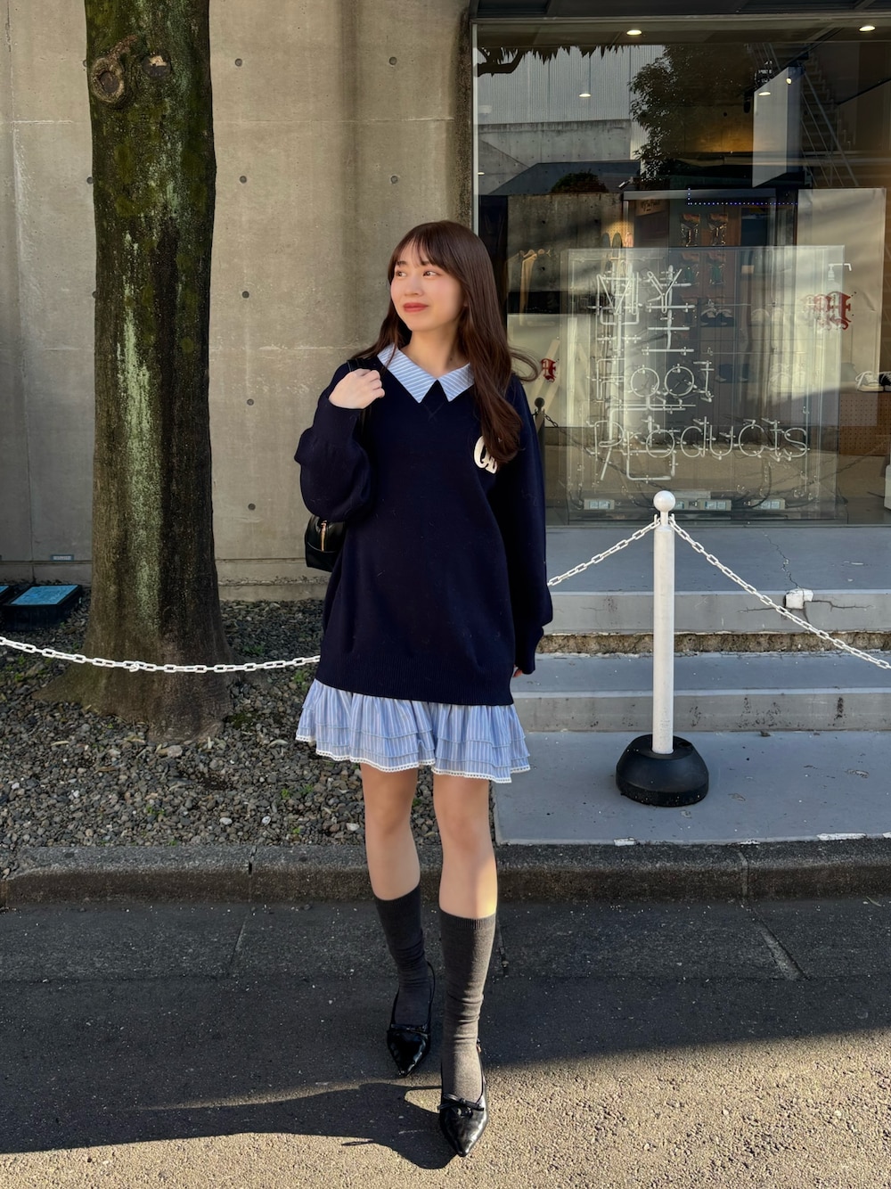 mayo(Chico プレス)のワンピース「【マルチway】シャツレイヤードニットワンピース」を使ったコーディネート
