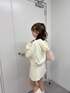 153cm骨格ウェーブ ピーチスキン素材のセットアップ🍑 コンパクトシルエットが今年っぽくて可愛かったです♡ スカートは共地のインパン付きなので安心して着用できます!