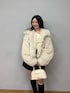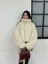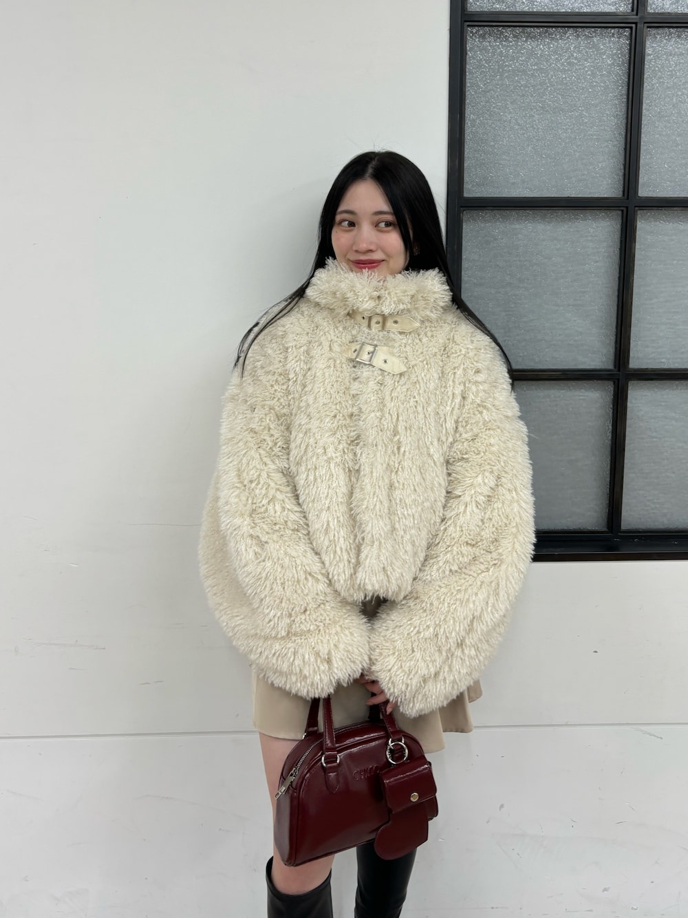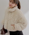 プードルみたいなふわふわ感がかわいいコート。 スタンドカラーにすると首元までしっかりあったかいです◎