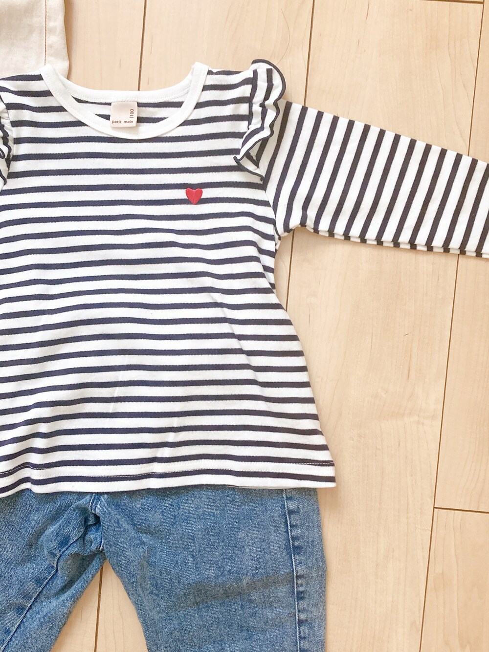 ♡のボーダーロンT×デニム 肩フリルが可愛い♡ 保育園着にする予定ー! size/100