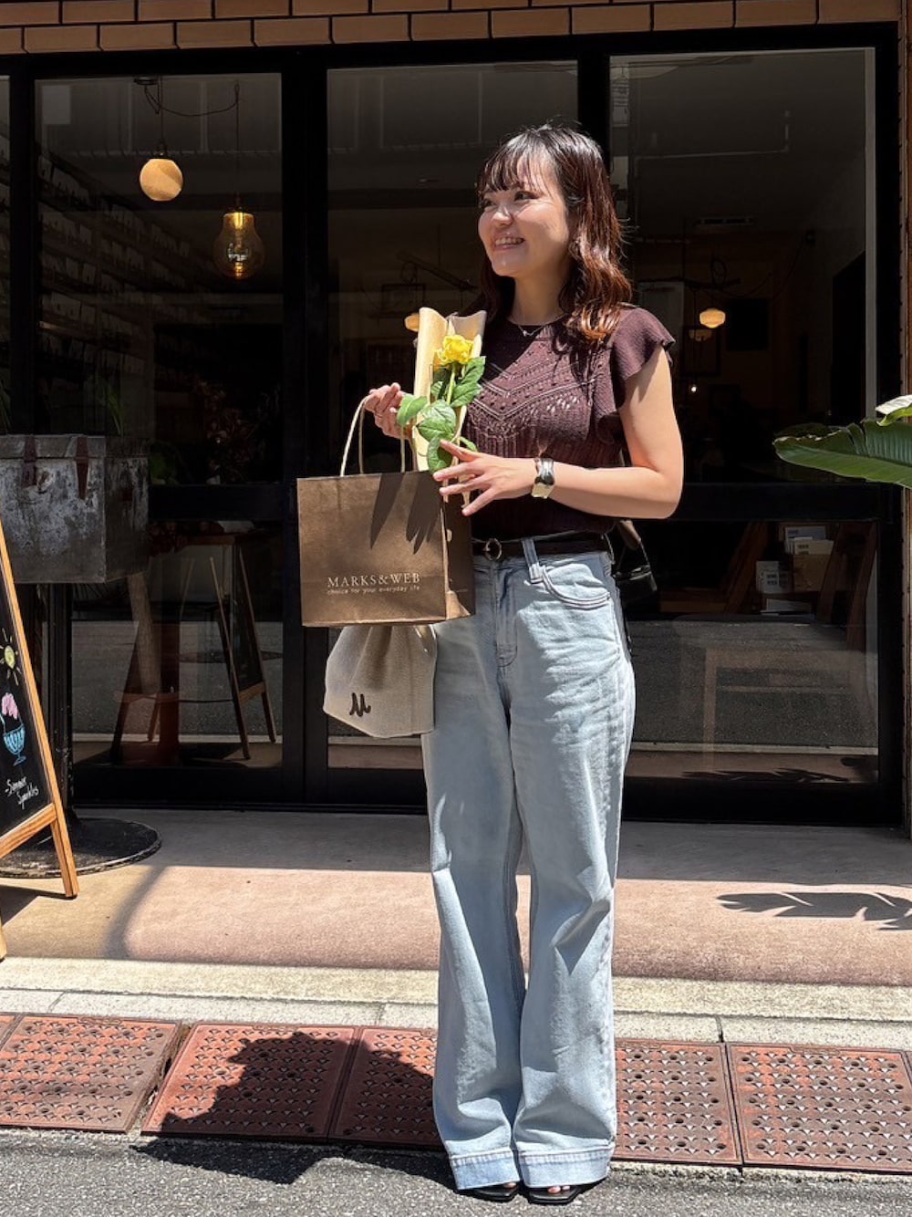 MICHIEのデニムパンツ「◇【累計販売6万本突破!選べる6色】【4サイズ展開XS-L] ベーシックワイドデニムパンツ【低身長サイズ有】【Lサイズ有】」を使ったコーディネート
