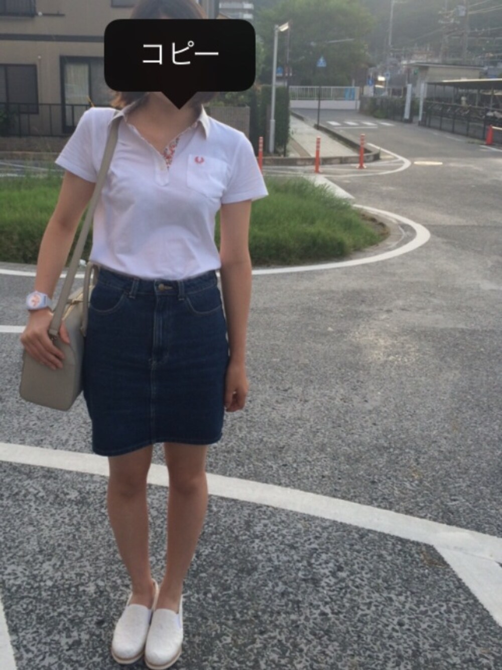白ポロシャツ × 白すりっぽん