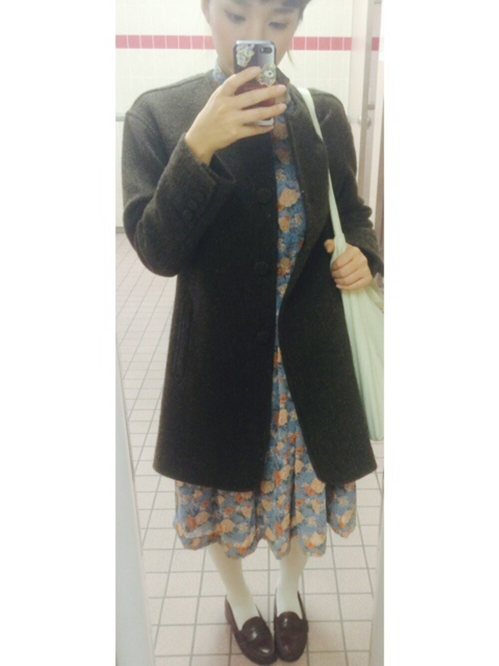 アウターは半端タケで 合わせました🙆 寒かったので ぬくぬくコードで🌼