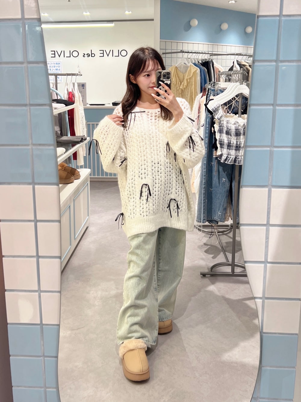 Mitsuki(OLIVEdesOLIVEルミネ立川店)のニット/セーター「リボンリボンニットチュニック」を使ったコーディネート