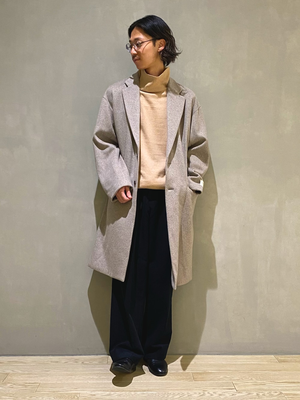 チェスターコートにオフタートルのインナー。 大人な雰囲気を醸し出すアイテムに 淡いカラーを選ぶことで秋冬らしい柔らかさを。 温かみのある装いに落ち着きますよね。 通販も可能です。 サイズなどもお気軽にご相談下さい‼︎