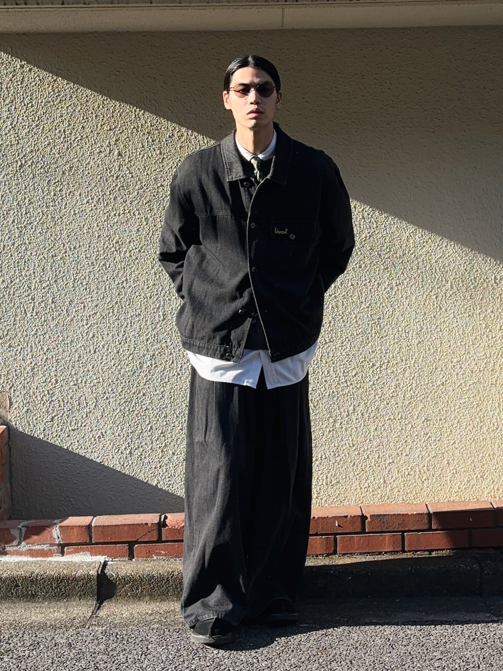 Takuya Kobayashiのデニムジャケット「オーバーサイズ 11oz ブラック デニムジャケット」を使ったコーディネート