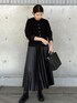 全てブラックのコーディネートも素材で遊ぶと重たくなりにくく、物足りなさもなくなります!