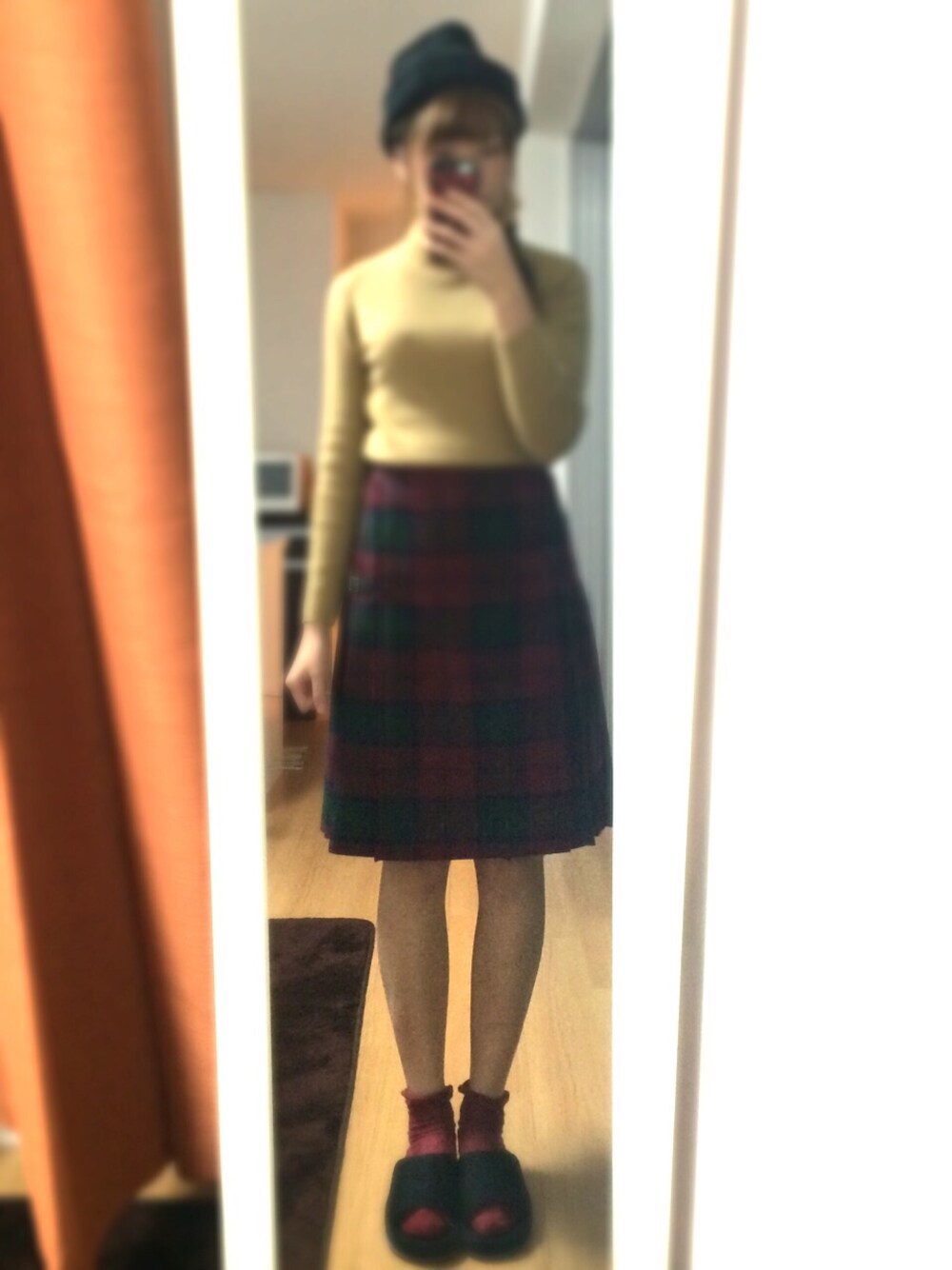 クリスマスらしいスカートにしました♪ぽっこりお腹が気になりますねえ(笑)