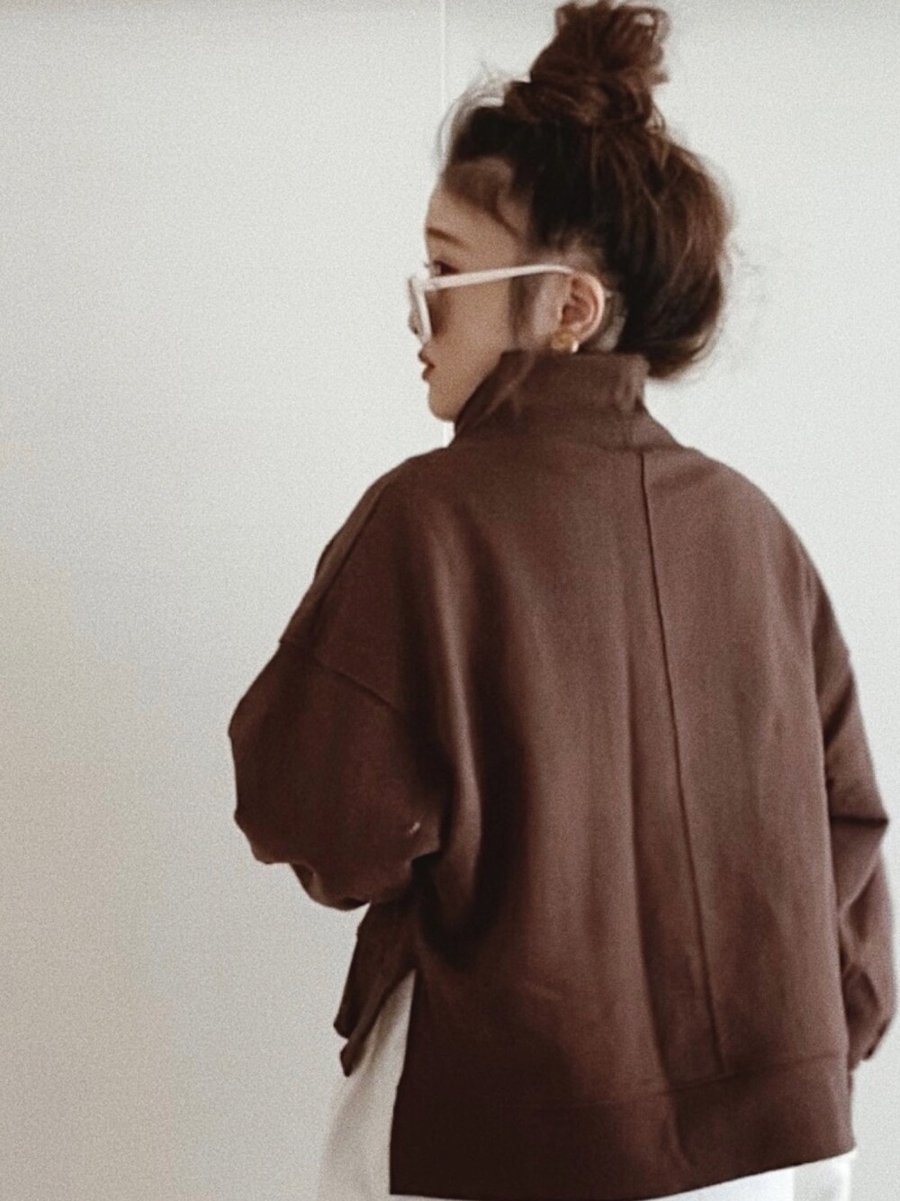 auntmariesさんのブラウンのハイネックスウェットを着用してます〜大好きなブラウン〜丈が丁度良くて下にロンTを重ねて着ましった❕🤎