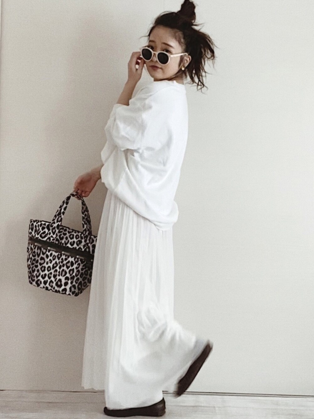 ホワイトコーデ❕❕ PICHIさんのロングプリーツスカートを着用してます〜〜フワフワで可愛いの Instagram是非チェックしてしてみてね @pichi_official