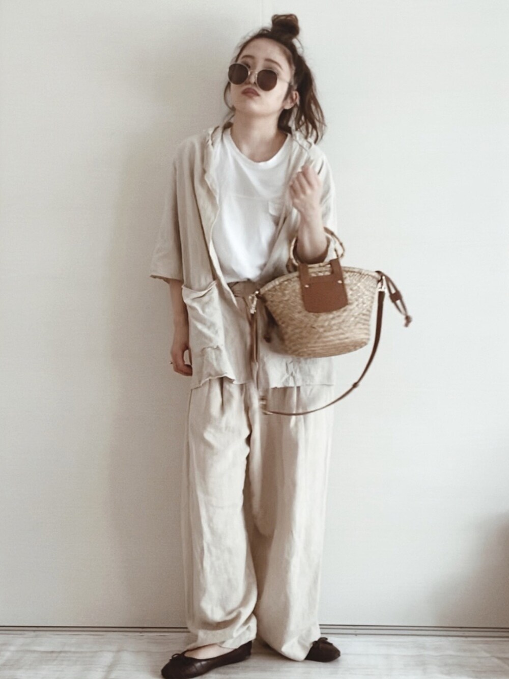 今日はSIKI PRODUCT さんのリネンシャツジャケット❕❕❕ 理念素材なので夏でも涼しくて中は同じブランドのもののタンクトップを着用してます❕🌼❤️