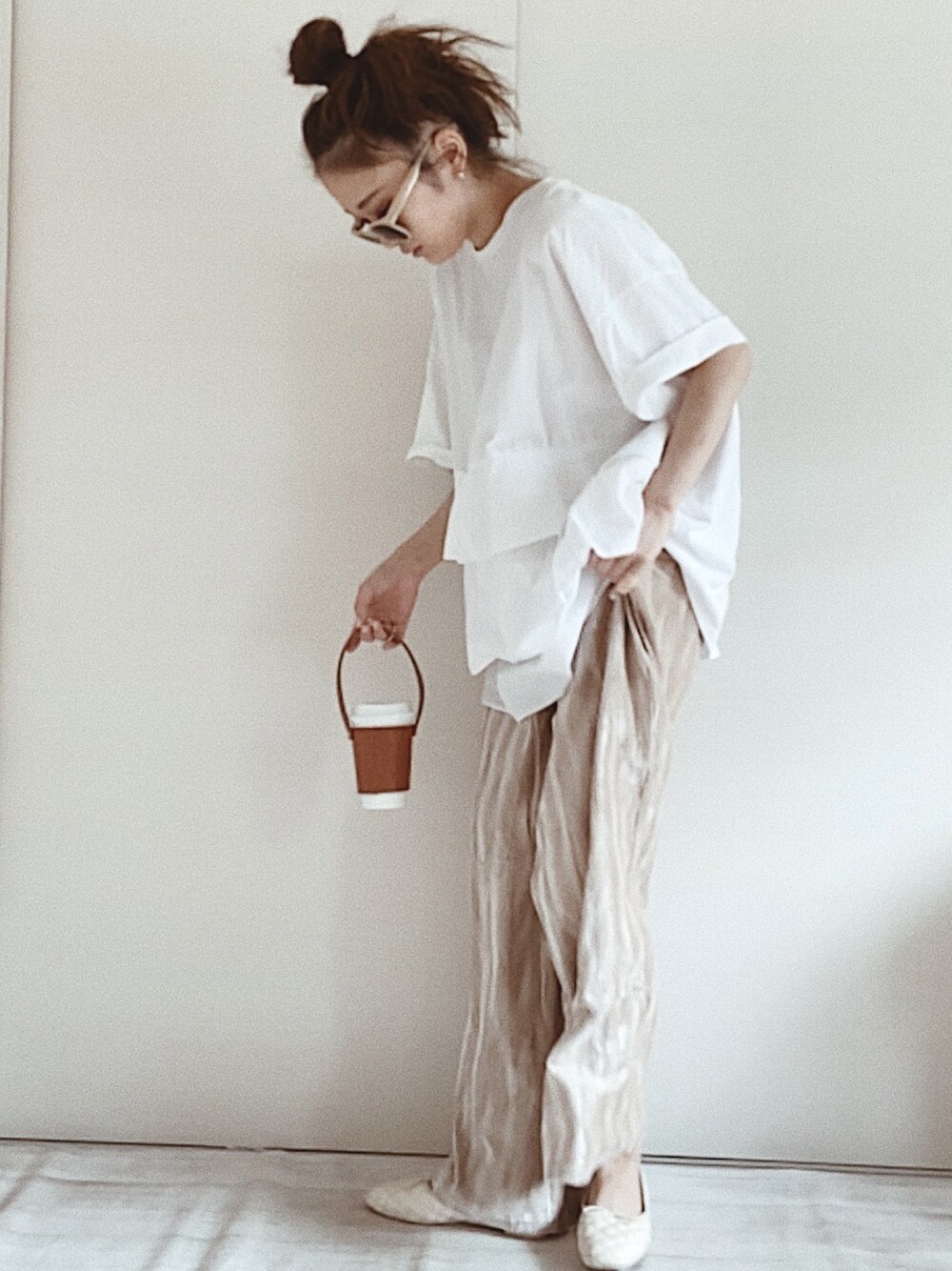 おはようございます🌞 涼しくなってきましたネ 今日はベロア素材のワイドパンツをzaraのトップスと合わせて着てみました recaさんのワイドパンツはとても肌触りがよくて ゆったりと着れるのがどタイプ❤️ カラーはわたしの好きなベージュに決めました