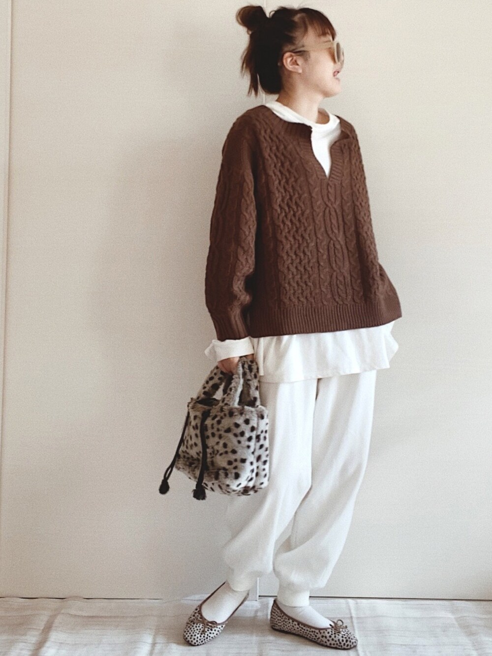 ブラウン✖️ホワイト☕️♡ 大好きなレオパードのモコモコバッグ〜🐆