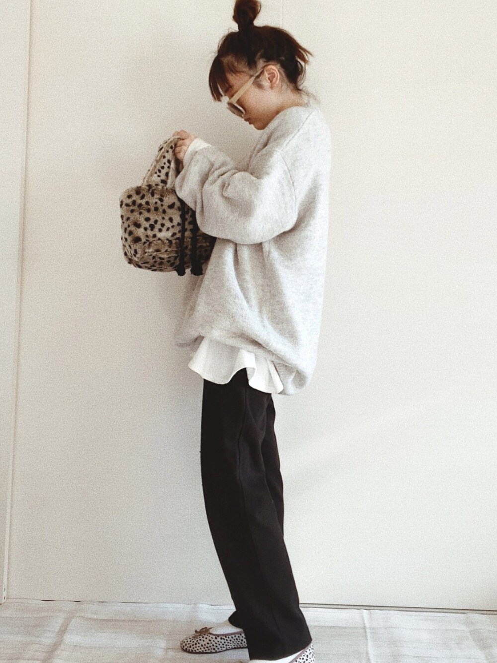 ニットのダボっと感がお気に入り❤︎ レイヤードスタイルで白のロンTで合わせました〜recaさんのお洋服はプチプラで形が可愛いものが沢山あるのですき🐆