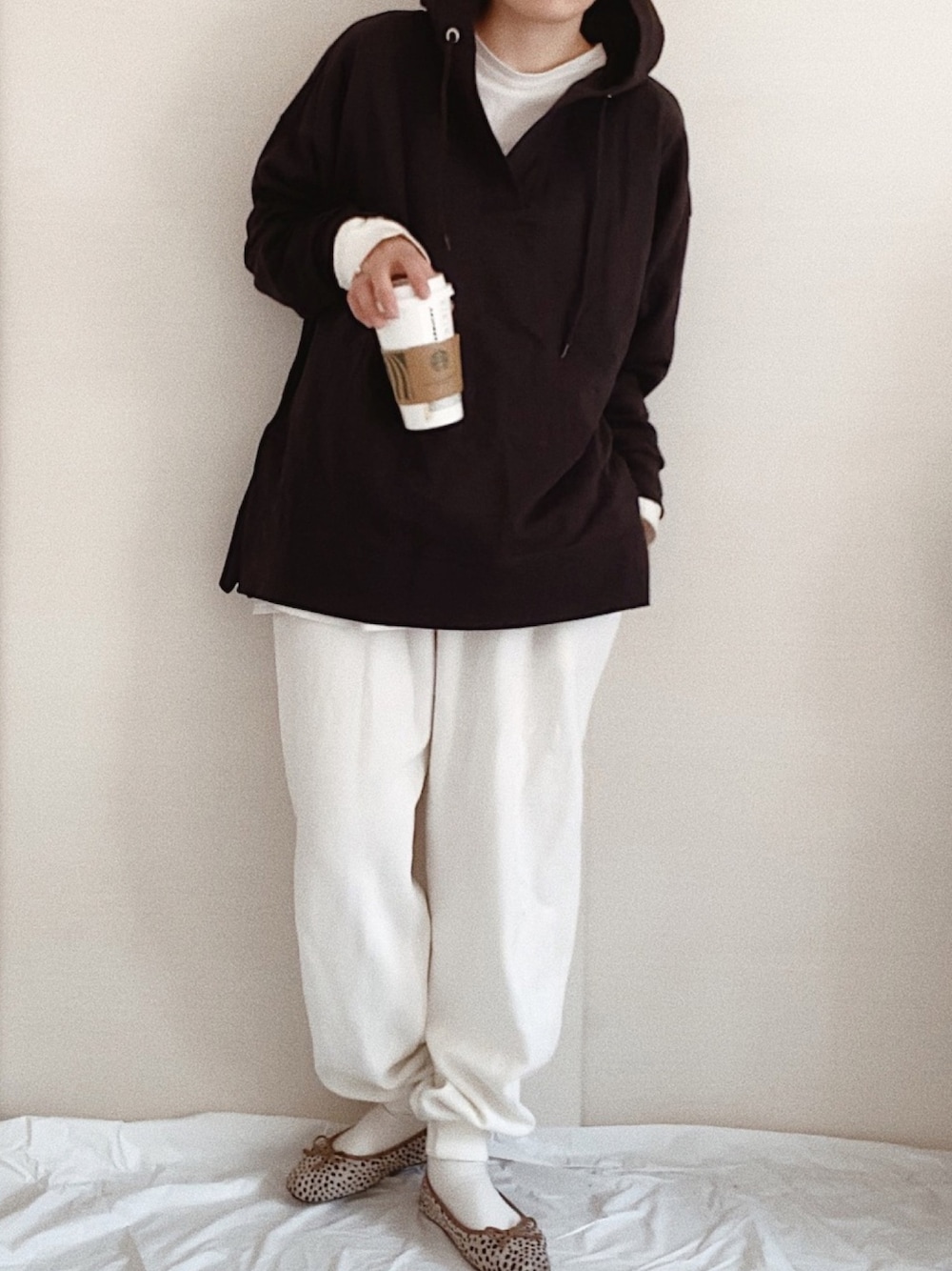 らふコーデ☕️ パーカーにスウェットパンツ モノトーンを選んでシックにお洒落に sakishimatokyo さんのVネックのパーカーがまたお洒落〜 Instagram→chankanadayo
