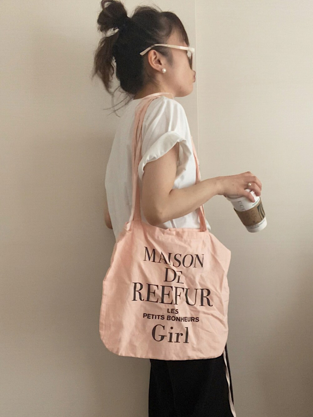 白Tコーデ 袖は折り曲げて着るのがすき 可愛い英字のbagはショッパーなの💞 Instagram 『chankanadayo 』