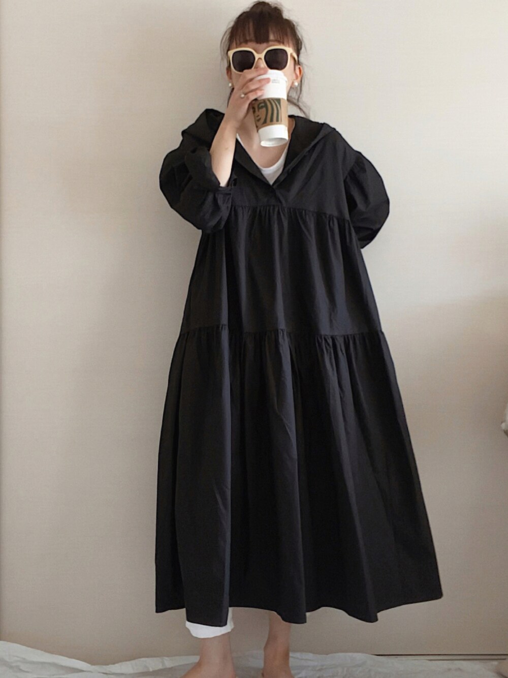 いいね、セーブありがとうございます♡ ティアードがフワッと見せてくれて形がオシャレな大人ワンピースコーデ フード付きなのもかわいいポイント♡ InstagramぜひCheckお願いします 『chankanadayo 』