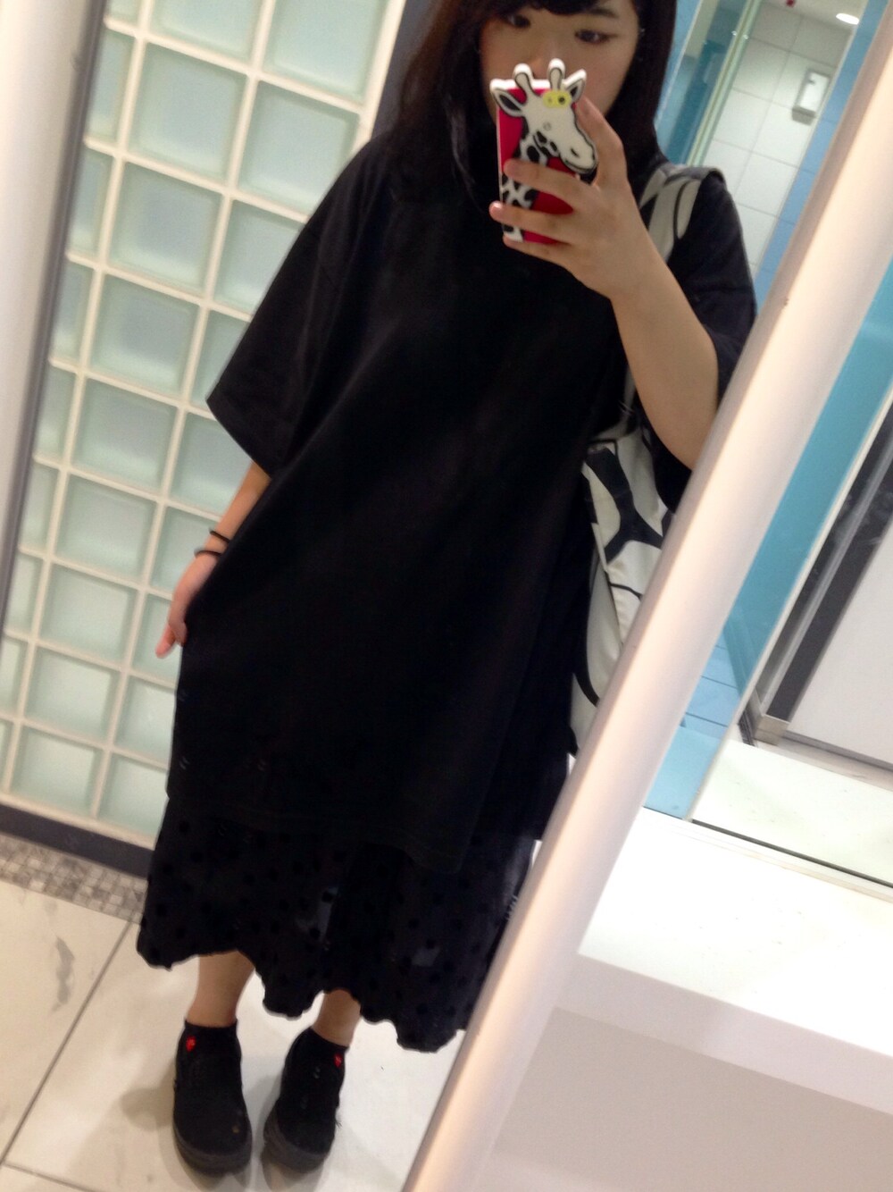 お気に入りの超bigteeが楽チンでいいかんじ 今はなきローブドシャンブルのスカート じつは母親のおさがりだよ。 まっくろかなりかなり落ち着く