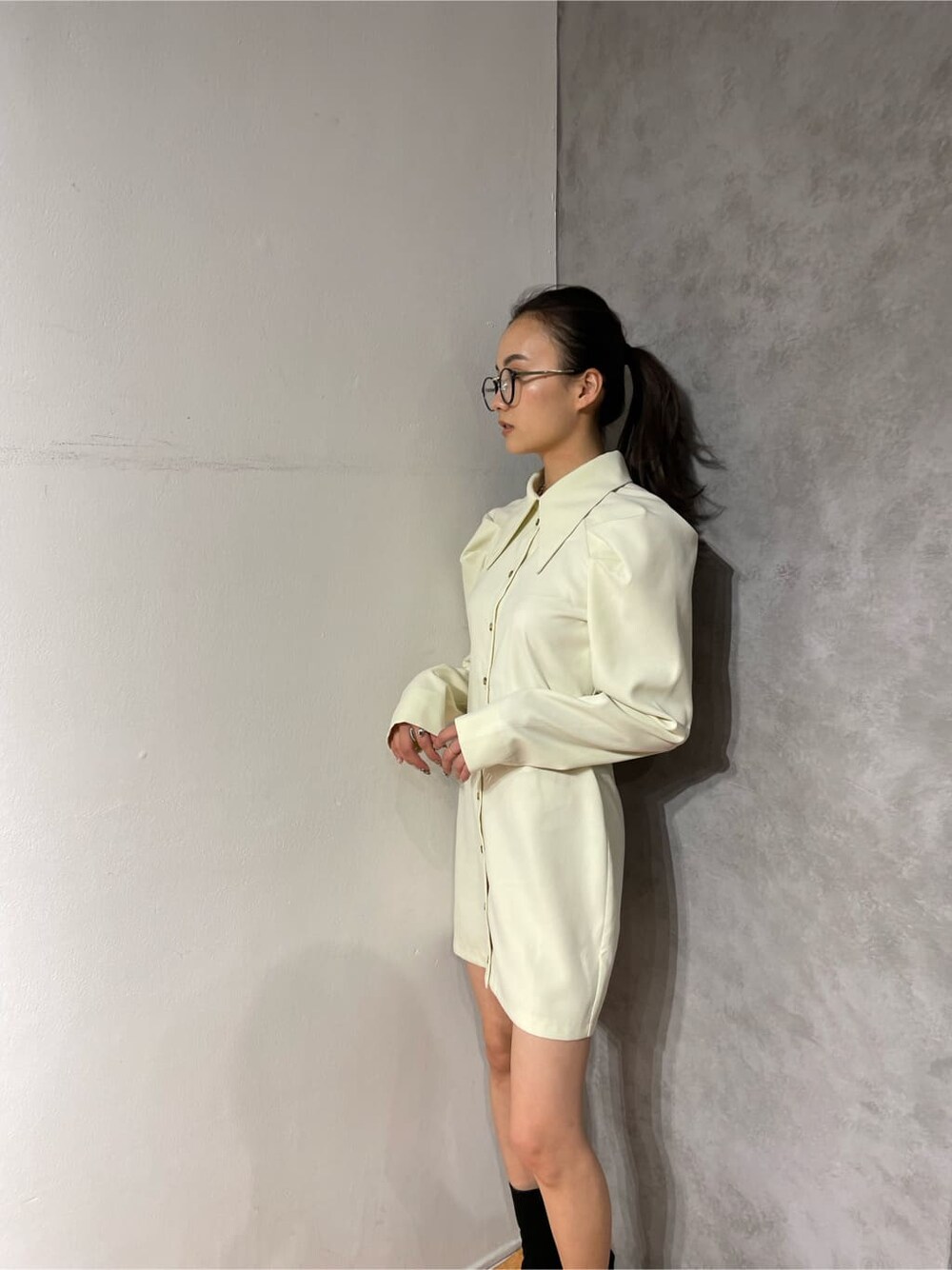 濱田 萌衣(EMODA)(EMODA)のワンピース「ビッグカラーシャツワンピース」を使ったコーディネート