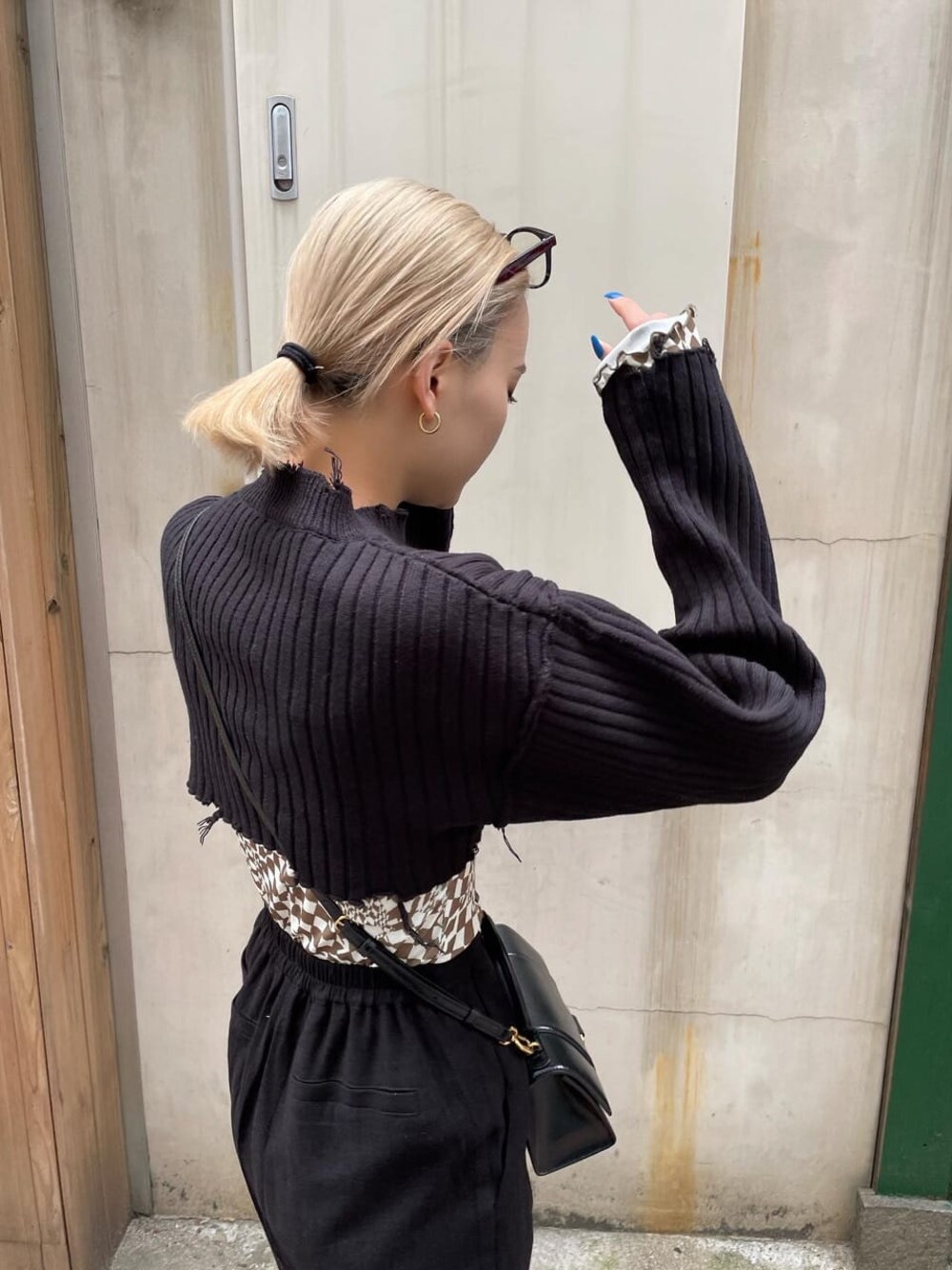 濱田 萌衣(EMODA)(EMODA)のニット/セーター「スーパークロップクラッシュニット」を使ったコーディネート