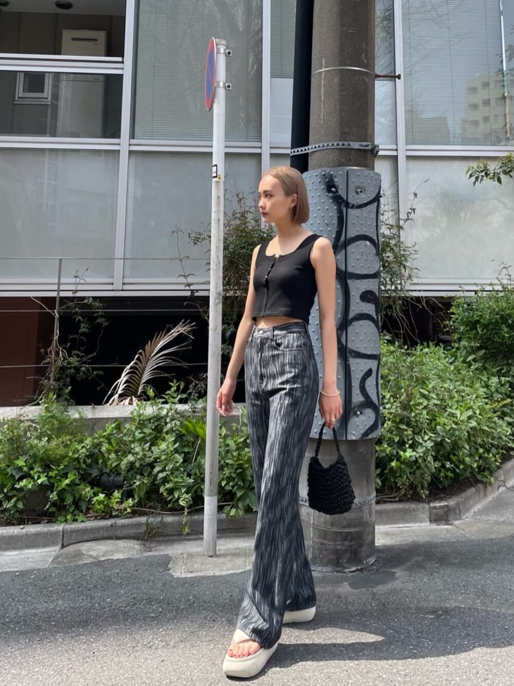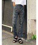 カジュアル過ぎない印象でシンプルなスタイリングのアクセントになるアイテムです♪縦に流れる様な抽象的な柄なので、脚を綺麗に見せてくれてくれながら柄の取り入れやすさも兼ね備えています!!!!シンプルになりがちな季節は一点デザイン性のあるアイテムがあると重宝する事間違いなしです♡