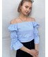 袖がパフスリーブデザインになった女性らしいブラウス!グレー・ブルーはストライプ柄でシーズンらしいトップスになりますオフショルダーとしても着用できる2WAY仕様がポイントです♪