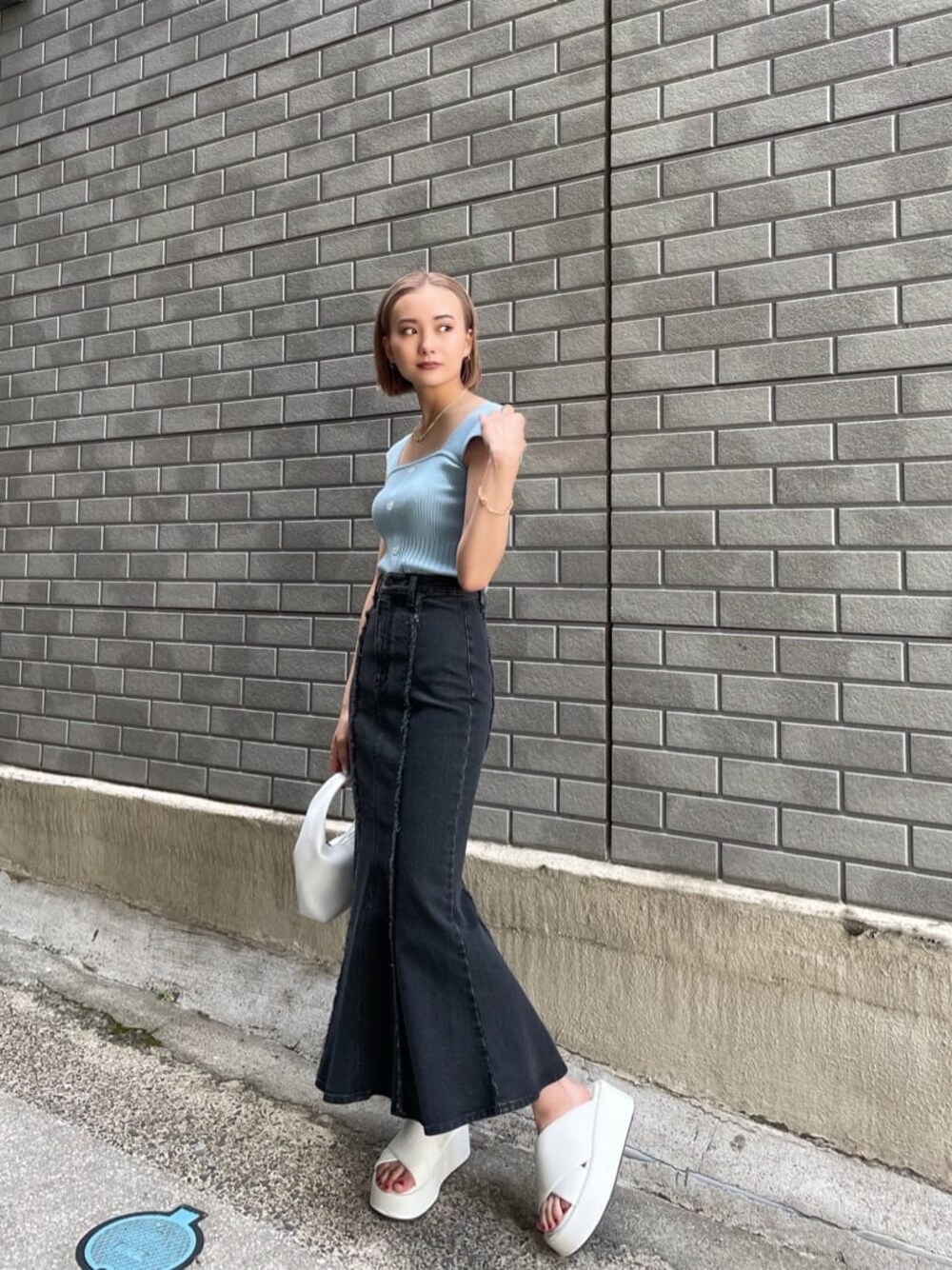 濱田 萌衣(EMODA)(EMODA)のスカート「スイッチングマーメイドデニムスカート」を使ったコーディネート
