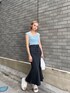 バックレースアップがポイントのデニムマーメードスカート!微ストレッチのデニム生地を使用しているので、程よく体にフィットし綺麗なシルエットを出してくれて更に履き心地も良いのが特徴です♪フロントのフリンジラインが細見え効果抜群・ストレッチが効き着心地が◎・後ろ姿も華やかなデザインに♪♪