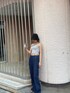 夏のスタイリングに軽やかなデニムサロペット♪細目ストラップとバスト下に来る股上のバランスがポイントです。夏に着やすい素材で着心地も軽く涼し気に着れます♡裾の断ち切りの仕様で、横糸の白が見えるさり気ない抜け感がアクセントに。ハイウエストでスタイルアップが可能♪