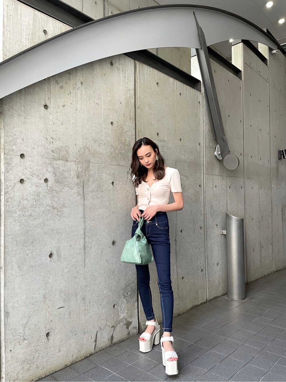 濱田 萌衣(EMODA)(EMODA)のデニムパンツ「【ELDER】NUDEハイウエストデニム」を使ったコーディネート
