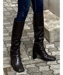 アッパーのスクエアがポイントのミドルブーツです。 ライトミックスはパイソン柄なのでコーデのアクセントになります。 スキニーなどに合わせて履いていただけるミドルブーツなので幅広いスタイリングに大活躍のアイテムです♡