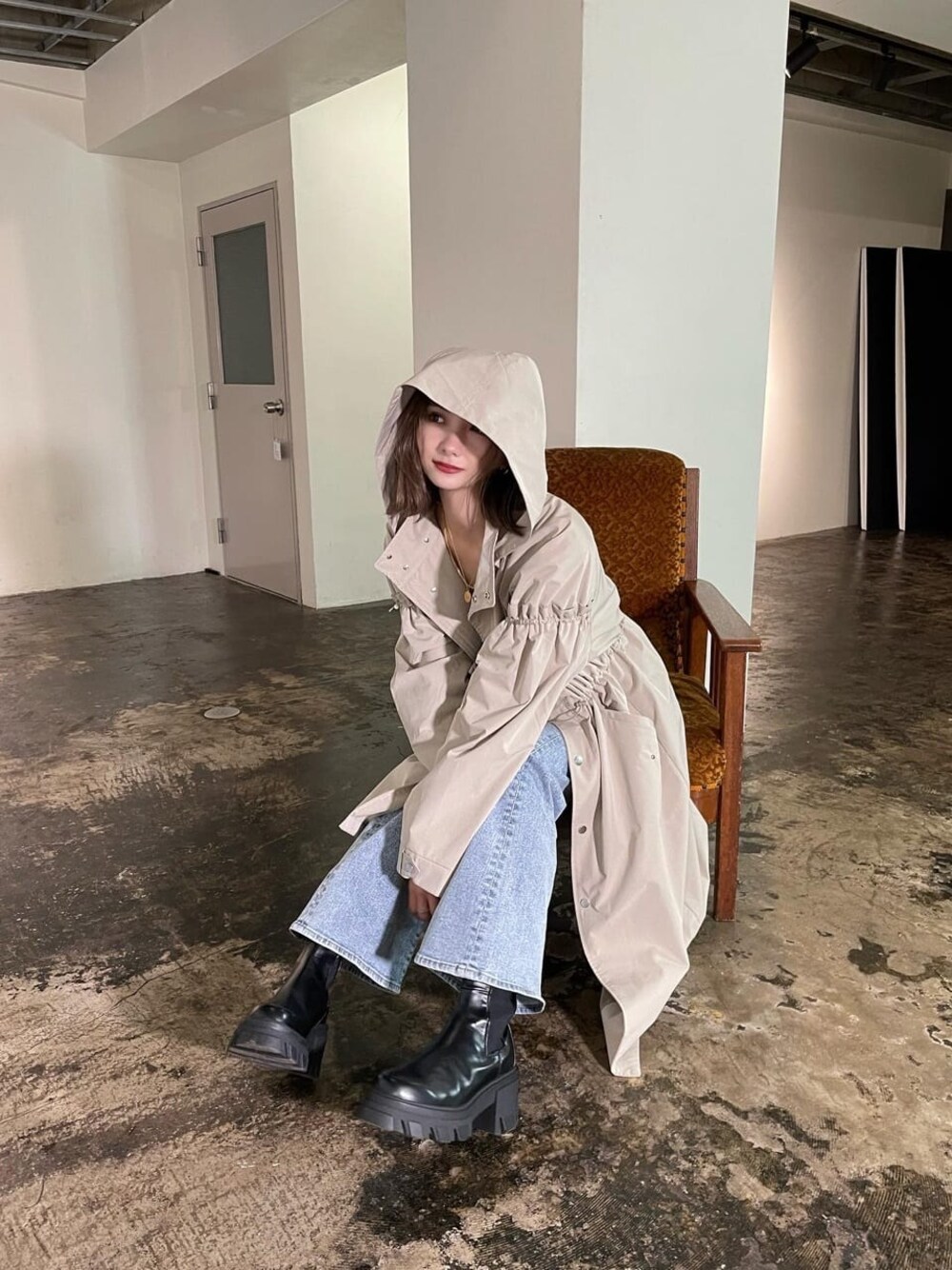 濱田 萌衣(EMODA)(EMODA)のモッズコート「ボリュームスリーブオーバーコート」を使ったコーディネート