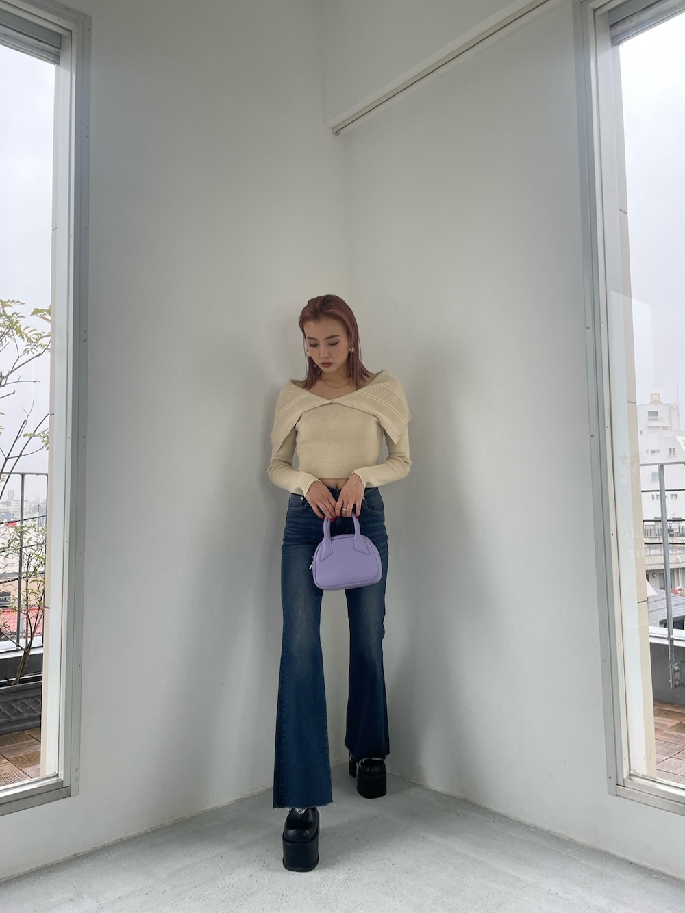 濱田 萌衣(EMODA)(EMODA)のニット/セーター「オーバーカラーデコルテニット」を使ったコーディネート