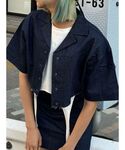 デニムのクロップシャツ♪セットアップでの着用がオススメです!セパレートでの着用も可能で、ミニスカートなどで今年らしいトレンドなコーデもオススメ♡