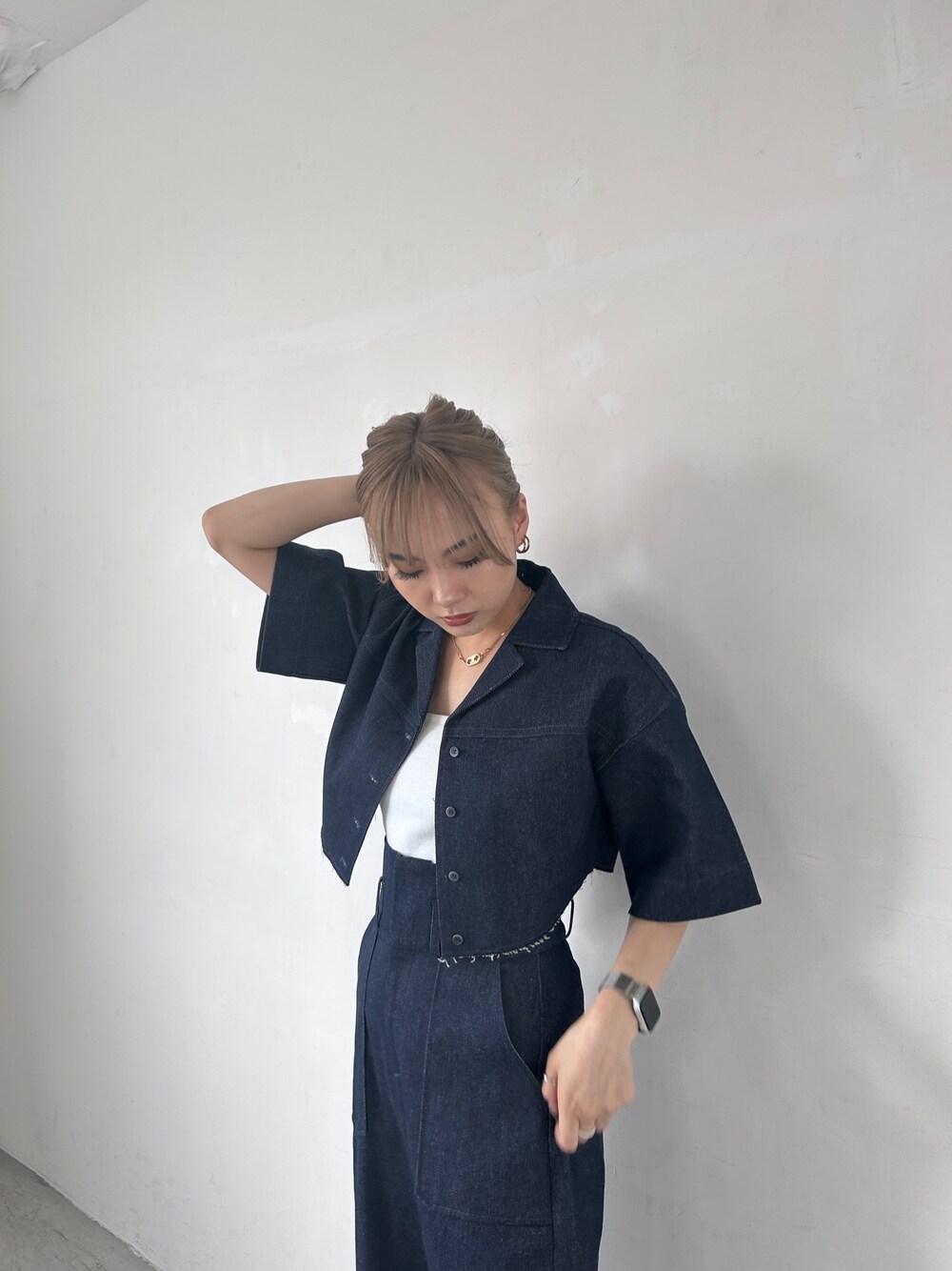 濱田 萌衣(EMODA)(EMODA)のシャツ/ブラウス「ヘムカットオフショルダークロップドシャツ」を使ったコーディネート