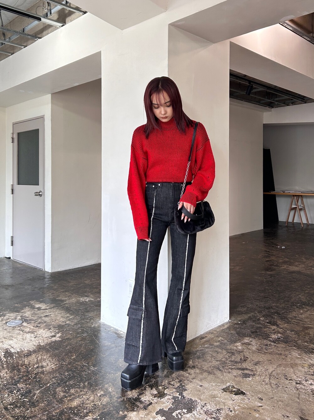濱田 萌衣(EMODA)(EMODA)のデニムパンツ「アンダーポケットフレアジーンズ」を使ったコーディネート