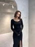 リプスリットのタイトワンピース フロントチェーンは取り外しが可能になっております。 デコルテがオープンになった女性らしさを引き出すワンピースです。