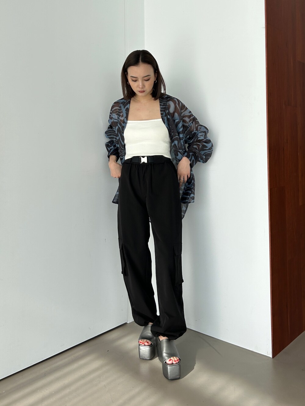 濱田 萌衣(EMODA)(EMODA)のカーゴパンツ「ナイロンベルトタックパンツ」を使ったコーディネート
