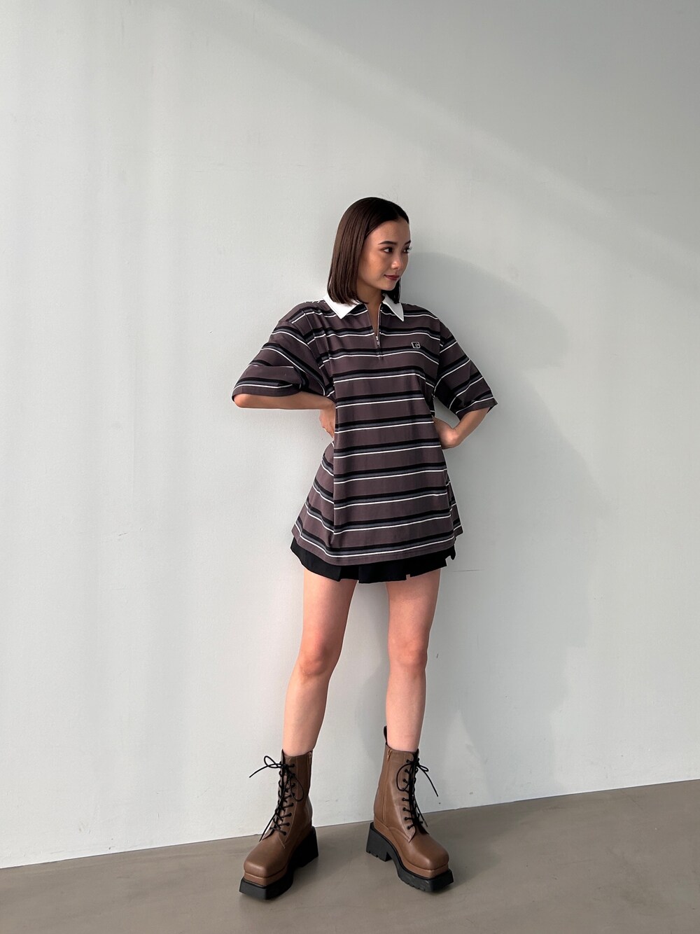 ハーフジップのオーバーTシャツ。 ワンピース風での着用が可能です。 カジュアルな印象でトレンド感のあるデザインになってます!
