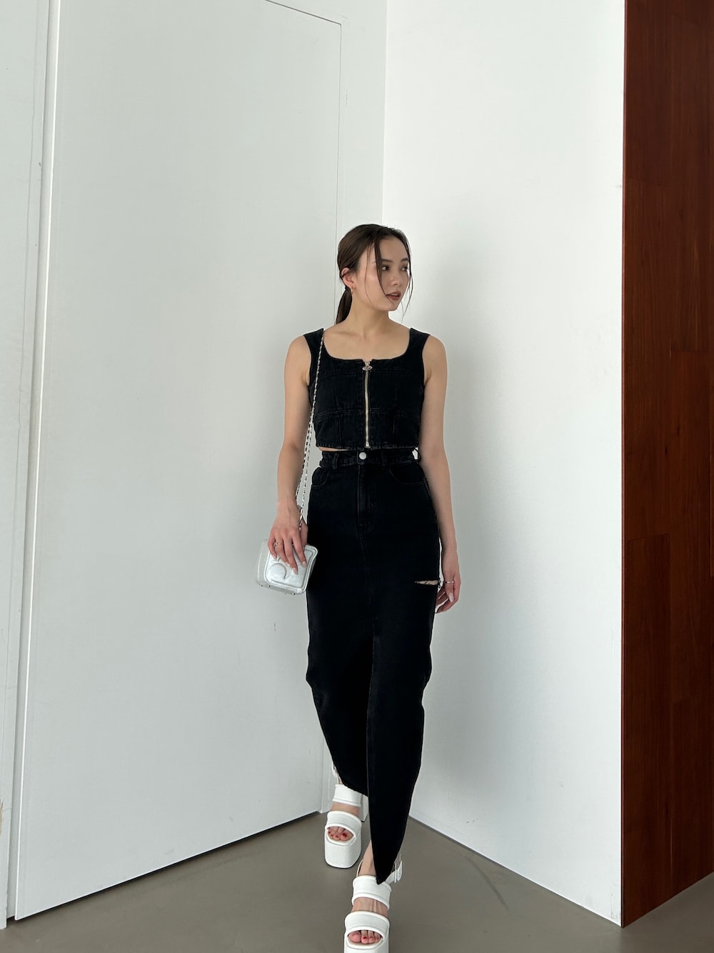 濱田 萌衣(EMODA)(EMODA)のキャミソール「フロントジップデニムビスチェ」を使ったコーディネート
