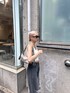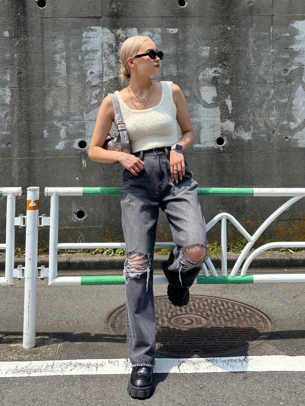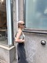 だめーじのきいたデニムなのでトップスは、シンプルなデザインに♪ シャギー素材のトップスで秋口の雰囲気を出した夏コーデ♡♡